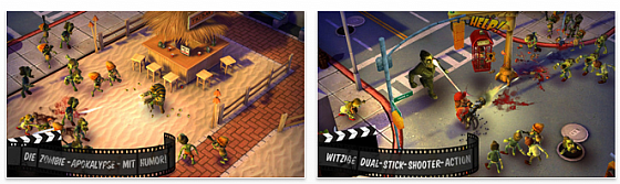 Rechtzeitig zu Halloween bringt Gameloft mit dem Freemium-Spiel Zombiewood einen Dual-Stick Shooter für iPhone und iPad, der Dich in die Rolle eines Stuntmans versetzt, der für 11 verschiedene Zombiefilme die Kampfszenen übernimmt. Doch die Zombies sind echt… Dem Regisseur ist das egal, er will die Chance für möglichst realistische Zombiefilme nutzen und möchte jedoch nicht nur den möglichst erfolgreichen Kampf gegen die Zombies sehen, sondern gibt Dir zahlreiche Zusatzaufgaben, die Du pro Szene noch nebenbei erledigen sollst.