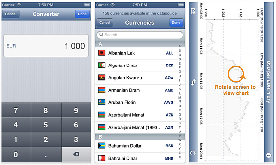 - CurrencyGo läuft auf iPhone, iPodf Touch und iPad ab iOS 4.3