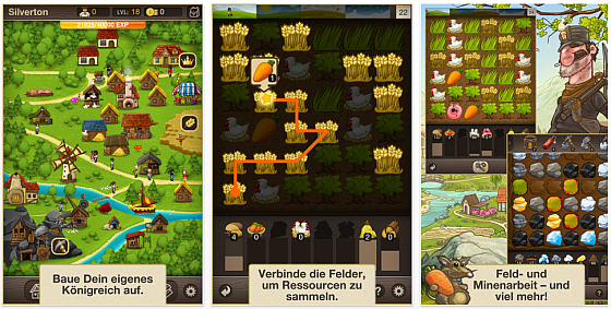Zum ersten Mal seit Erscheinen im App Store ist die Aufbausimulation Puzzle Craft von Chillingo kostenlos. Der sonst auch nur 99 Cent kostende Titel verknüpft ein Königreich-Aufbauspiel mit einer pfiffigen 3er-Kombipuzzle Aufgabe. Der Erfolg Deines Königreichs hängt nämlich sehr stark von der Landwirtschaft und dem Bergbau ab. Und was Du jeweils erntest oder abbaust, entscheidest Du in kleinen Puzzleaufgaben, wo Du auf dem Spielfeld durch das Kombinieren gleicher Symbole neue Rohstoffe herstellen kannst. Das ist am Anfang etwas verwirrend – vor allem deshalb, weil Dir auf dem Feld und in der Mine immer nur eine vorgegebene Anzahl an Zügen erlaubt ist.