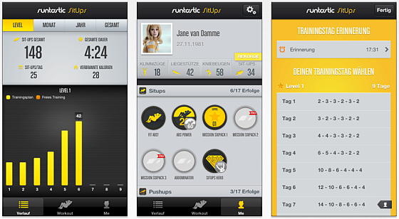 – Drei Levels mit einem sportwissenschaftlichen Trainingsplan für 100 Sit-Ups