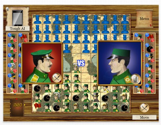 Klasse, dass Stratego so gut für unsere iGeräte umgesetzt wurde. Das Spiel iSchlacht Spiel (vorher hiess es besser iStrategia) enthält alles vom Brettspiel, bietet aber darüber hinaus noch schöne Animationen und Sounds. Man kann das Spiel gegen den Computergegner oder gegen menschliche Mitspieler spielen. Man kann auf zwei Geräten spielen, die man über Blutooth oder WIFI miteinander verbindet, oder online bis zu 5 Partien gleichzeitig spielen.