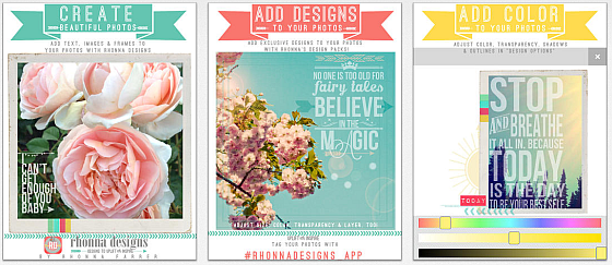 Mit der gerade kostenlosen App Rhonna Designs, die auf iPhone, iPod Touch und iPad läuft, gelingen aufwändig aussehende Bildaufbereitungen recht einfach. Die App bietet verschiedene Filter, Rahmen und die Möglichkeit, Fotos durch Texte und Cliparts zu ergänzen. Die Filter sind nicht voll überzeugend, da gibt es Bildbearbeitungs-App, die das besser können, die Stärke der App liegt aber auch beim Hinzufügen von Objekten und Texten.