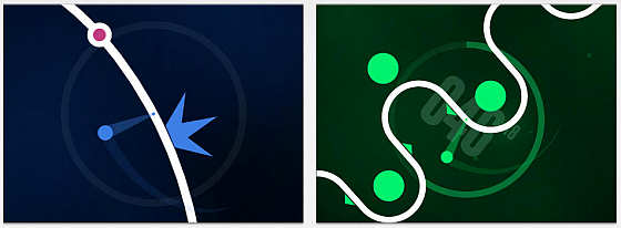 Links siehst Du den Voyager-Modus. Oben ist so ein Knotenpunkt, der die Eigenschaften Deines Punktschweifes ändert, rechts ein Hindernis, welches Du nicht berühren darfst.
