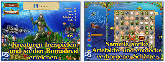 Es gibt einige Zusatzsammlungen, mit denen man die Bonus-Level freischalten kann. Manchmal findet man unter den Spielsteinen auch Edelsteine oder Meeresbewohner.