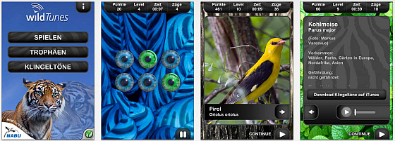 Hat man ein Tierstimmenpaar gefunden, wird ein Bild des Tieres angezeigt, dessen Töne man gerade gefunden hat. Man kann sich dann auch die Tierstimme noch einmal in voller Länge anhören und – gegen eine Spende an den Nabu – die Tierstimme als Klingelton für das iPhone runterladen. Sämtliche verwendeten Tierstimmen kommen aus dem Tierstimmenarchiv des Museums für Naturkunde in Berlin.