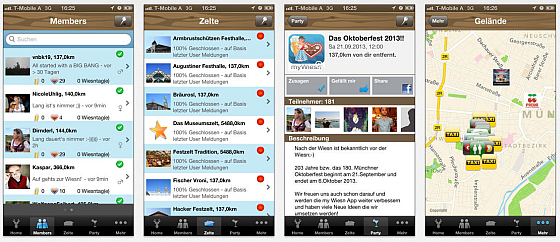 Die App bietet auch aktuelle Wetterdaten, Maßcounter, persönliche Statistiken, Zeltbelegungsdaten und alle Infos von der Reisecommunity Tripwolf. Man kann über die App an diversen Plätzen einchecken, so dass Deine Freunde wissen, wo Du Dich gerade aufhälst. Gerade bei der Geräuschkulisse, die auf dem Oktoberfest herrscht, kann man mit dieser App die Kommunikation aufrechterhalten. Dazu müssen natürlich Deine Freunde auch die App installiert haben.