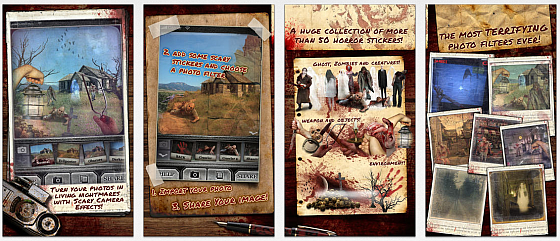 Mit Scary Camera Effects bekommst Du zwanzig Gruselfilter für Deine Bilder und über 50 frei platzierbare Sticker in guter Qualität, mit denen Du aus jedem normalen Foto ein übernatürliches Bild zaubern kannst. Das geht ganz einfach. Es gibt zwei Bearbeitungsmodes: einmal die Filter und dann die Sticker. Das fertige Bild kannst Du auf Deinem Gerät speichern, per mail versenden oder direkt aus der App auf facebook oder twitter posten.