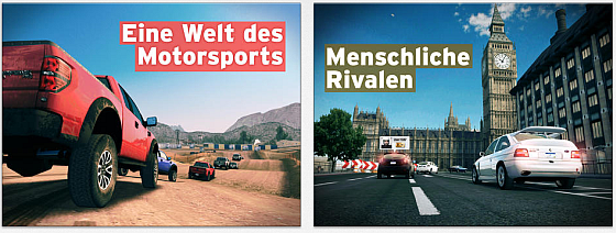 Ein Plus sind die Rennen gegen Freunde, das Feature mit dem einstellbaren Gesichtsfoto ist zwar nicht ganz ausgereift aber ganz niedlich. Dazu gibt es auch News und Videos aus der Automobilszene (die sind dann aber in englischer Sprache).